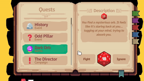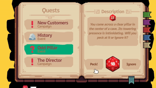 Discover odd encounters and make choices that leads to rewards or disasters. Do you peck open the mysterious box or leave it be? Do you rescue the goblin stuck under a boulder… or pretend you didn’t see him?